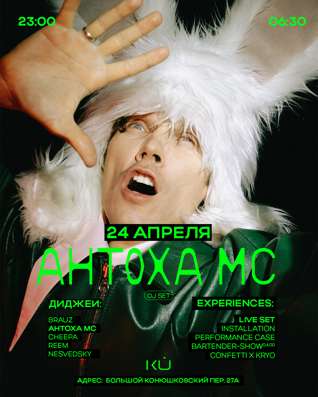 пятница | 24 апреля | 23:00-06:30
